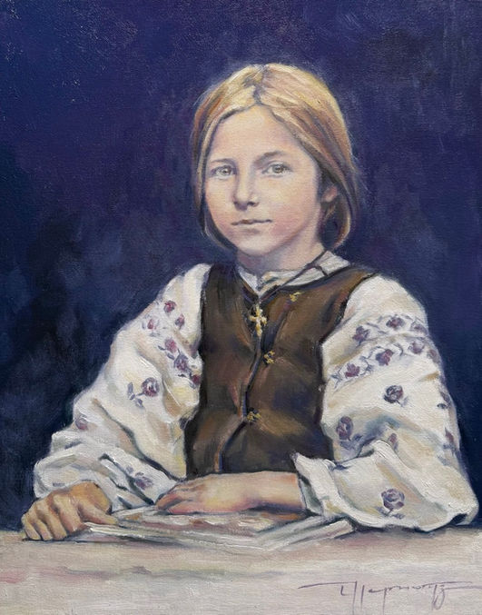 Не можливо відірвати погляд від очей цієї дівчинки. Вона навіть не намагається вирівняти спинку перед фотографом чи посміхнутись. Така в ній природна вихованість і стриманість.